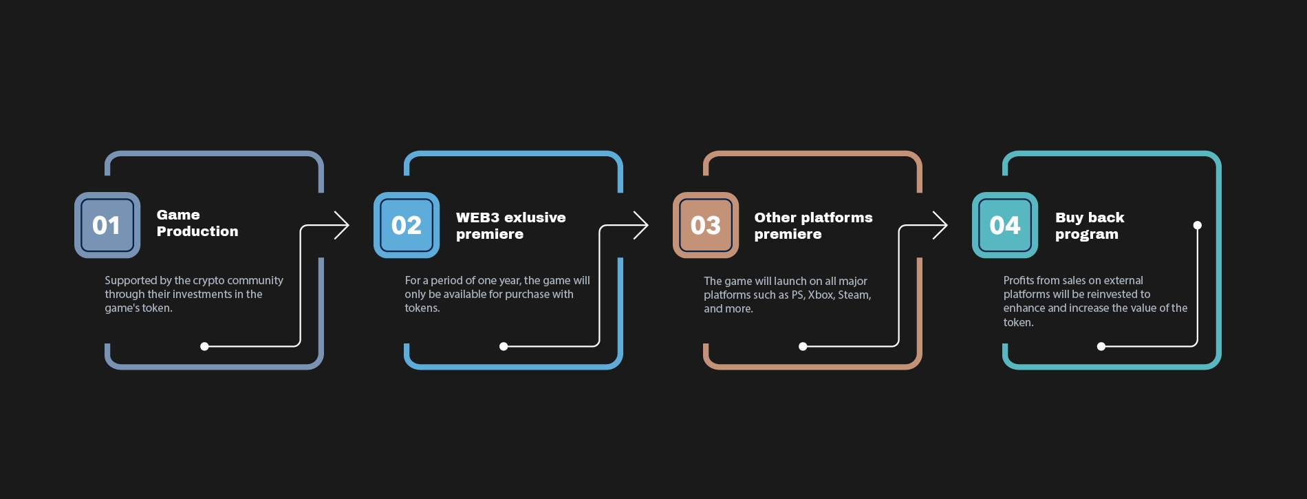 Revenue Streams: Our revenue streams include in-game purchases, marketplace transactions, and partnerships. A percentage of these revenues will be reinvested into the ecosystem, supporting ongoing development and community initiatives.